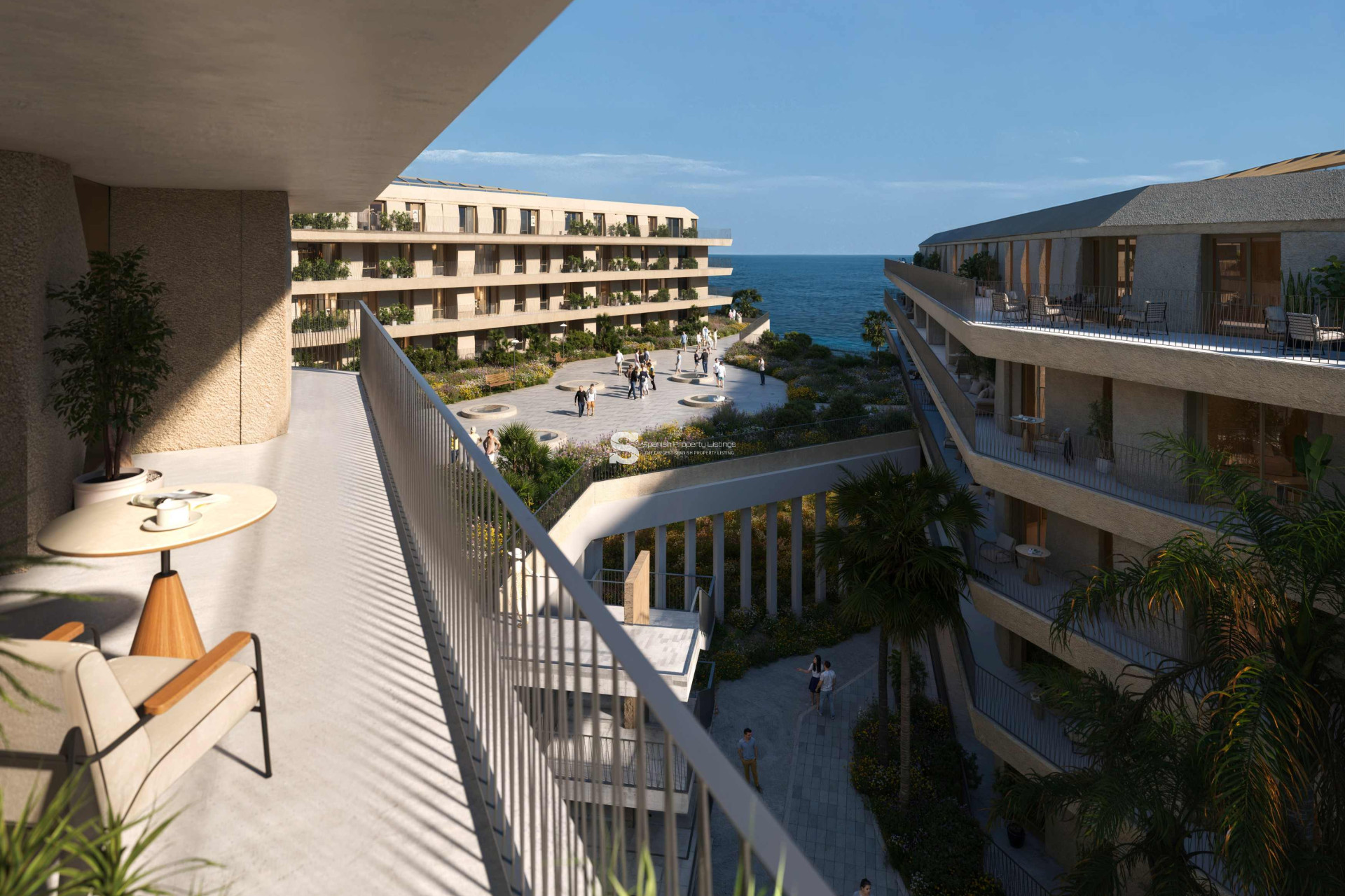 Los exteriores de este residencial están diseñados para ofrecer un estilo de vida en armonía con el entorno natural. Las propiedades cuentan con terrazas privadas, perfectas para disfrutar de las vistas al mar y del clima mediterráneo. Además, el complejo incluye amplias zonas ajardinadas que proporcionan un espacio verde para el relax y el esparcimiento. La comunidad también dispone de un solárium, ideal para tomar el sol en un ambiente tranquilo y privado. La ubicación en primera línea de mar asegura que los residentes puedan disfrutar de la brisa marina y de vistas panorámicas inigualables.